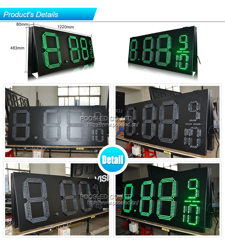 | Diseño de dígitos: | Los módulos de 7 segmentos están sellados con pegamento, alcanzan el grado de impermeabilidad IP67, con sombra de polvo que hace que los leds funcionen con normalidad todo el tiempo. | ||||||