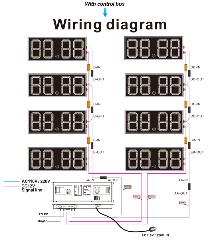 Diseño especial impermeable al aire libre 6 '' de alto brillo ámbar PCB 8.8.8.8 Led señal de precio de gas