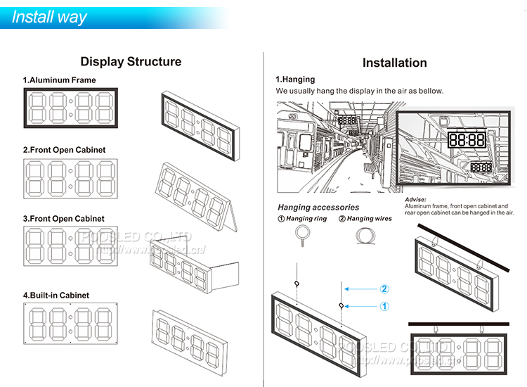 Los módulos de 7 segmentos están sellados con pegamento, alcanzan el grado de impermeabilidad IP67, con