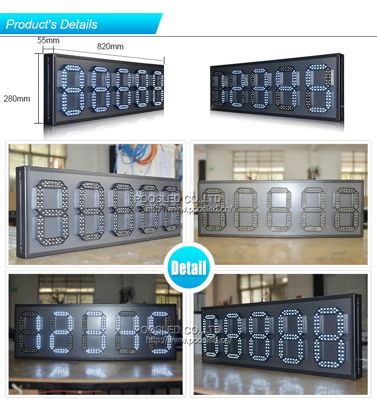 Diseño especial para exteriores, alto brillo, 8 '', blanco 88888, tablero de precios de combustible LED