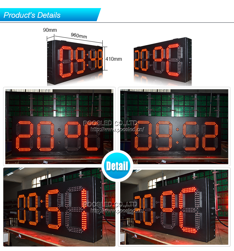 Doble cara exterior impermeable 12 pulgadas solo rojo 88:88 Led señal de tiempo y temperatura