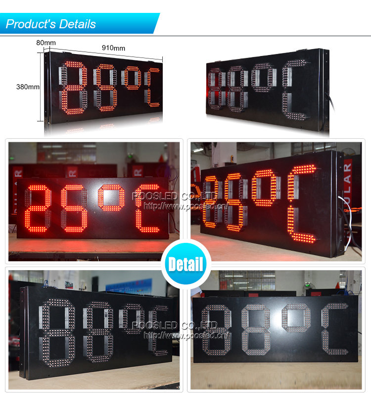 Estilo especial Ip65 Señal de temperatura llevada roja al aire libre de 12 pulgadas y 7 segmentos