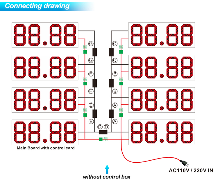 | Diseño de dígitos: | Los módulos de 7 segmentos están sellados con pegamento, alcanzan el grado de impermeabilidad IP67, con pantalla antipolvo que hacen que los leds funcionen con normalidad todo el tiempo. | ||||||
