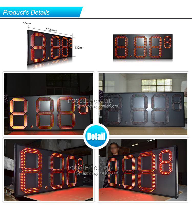 Popular al aire libre 7 segmentos de aluminio rojo de 15 pulgadas 8,88 9 LED señal de precio de gas