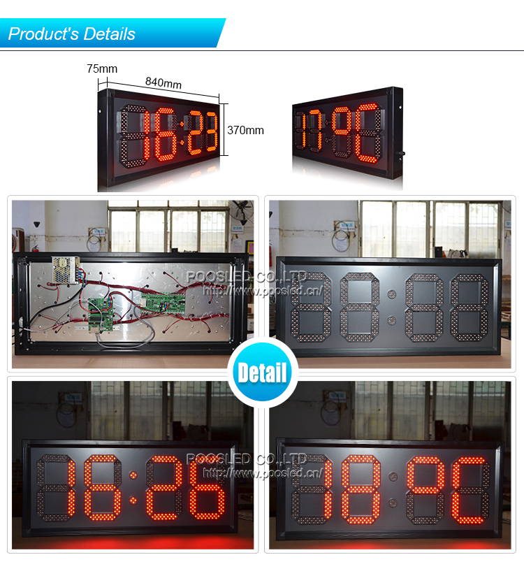 Popular reloj digital led rojo 88:88 de 10 pulgadas para exteriores