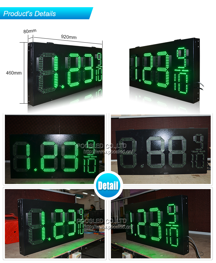 Precio de fábrica 12 '' + 6 '' Verde 7 segmentos 8.88 9/10 Led Oil Gas Sign