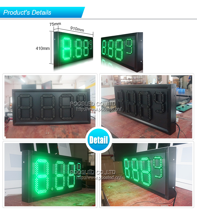 Señal LED de alta calidad a prueba de agua D10 "+ D6 " Verde 8.88 9 Gasolinera