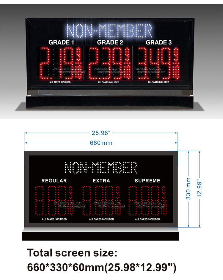 Topper del precio del combustible de dos grados del alto brillo del nuevo diseño
