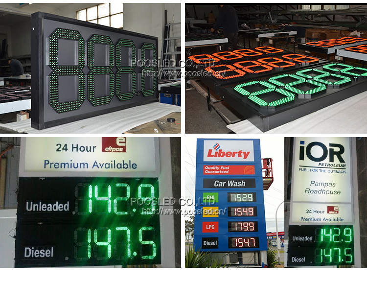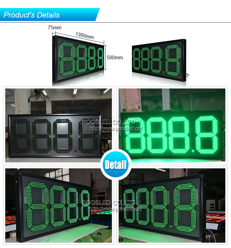 Venta al por mayor profesional de 15 '' impermeable verde 888,8 LED señal de precio de gas