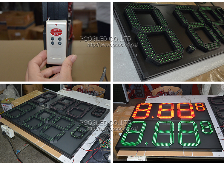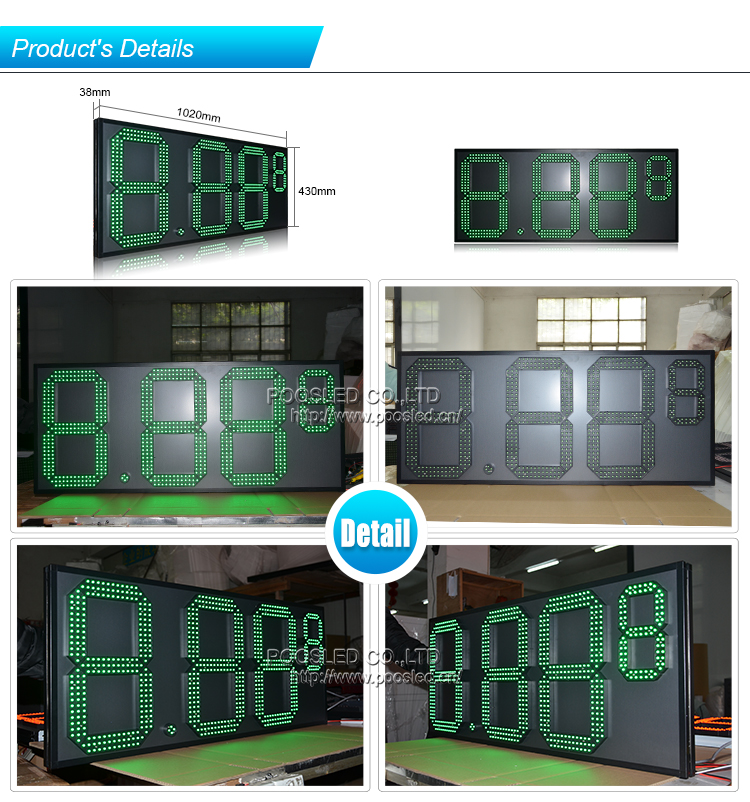 Venta caliente 8.88 9 de alto brillo verde de 7 segmentos de tablero de precio de gas llevado