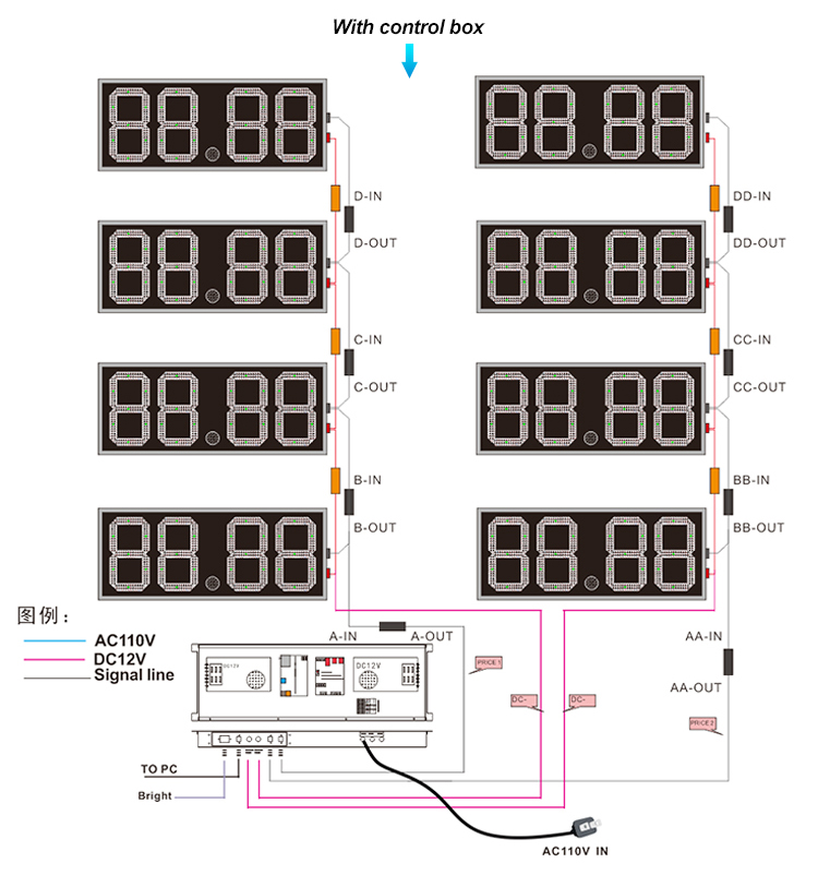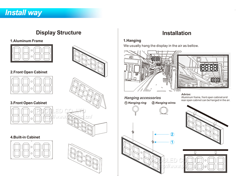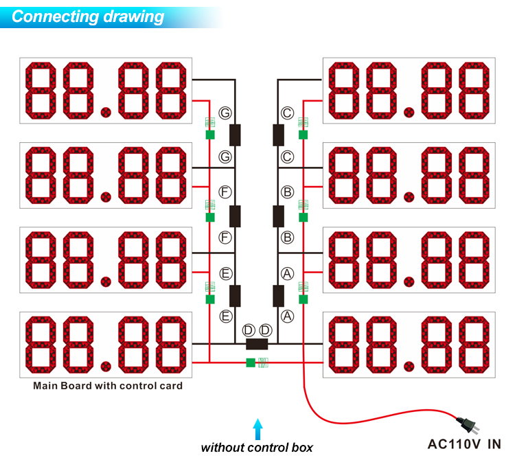 | Diseño de dígitos: | Los módulos de 7 segmentos están sellados con pegamento, alcanzan el grado de impermeabilidad IP67, con pantalla antipolvo que hacen que los leds funcionen normalmente todo el tiempo. | ||||||